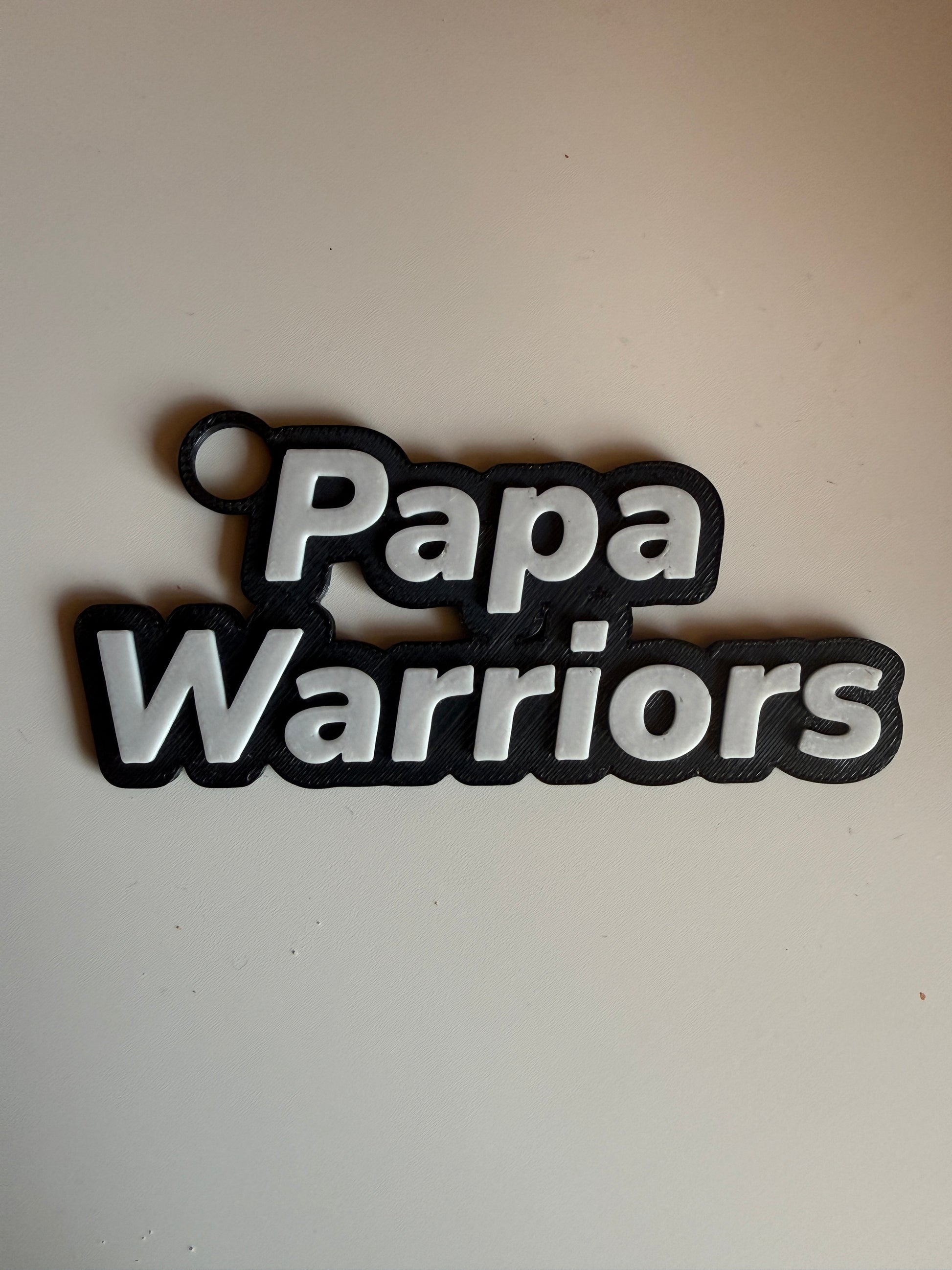 Der "Papa Warriors" Schlüsselanhänger ist ein exklusives, vollständig in PLA 3D-gedrucktes Community-Merchandise, das Stolz und Zusammenhalt für alle Mitglieder der Papa Warriors symbolisiert.